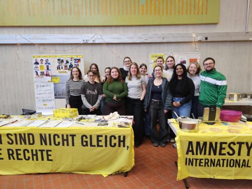 Der Tag der Menschenrechte war auch dieses Jahr wieder ein voller Erfolg. Wir möchten Danke sagen. Danke an alle, die bei unserem Stand am 10.12. vorbeigeschaut und die Petitionen des Briefmarathons unterschrieben haben. Wir haben tolle Gespräche geführt mit denen, die unsere Arbeit unterstützt haben und viele Unterschriften sammeln können. Wir hatten eine tolle Zeit und fanden es toll, mit so vielen von Euch ins Gespräch zu kommen. Alleine am Tag der Menschenrechte konnten wir mit Eurer Hilfe fast 1500 Unterschriften zusammentragen. Danke natürlich auch an alle, die bei der Orga mitgeholfen haben. Wir freuen uns schon auf das nächste Mal, wenn wir gemeinsam die Menschenrechte feiern können. Vielleicht sehen wir ja einige von Euch auch zum Plenum wieder.